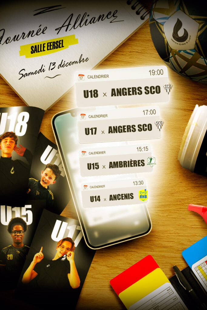 Communication Journée Alliance Années : 2025 – 2026 Type de prestation : Photographie, Graphisme Logiciel Utilisé : Photoshop, Lightroom En résumé Joueur évoluant en Prénational au sein du club de Carquefou Handball, j’ai été missionné par le club pour réaliser l’affiche d’un événement majeur : une journée de championnat dédiée aux équipes de l’Alliance Erdre et Loire. Cette alliance entre les clubs de Carquefou et de Sainte-Luce réunit une grande partie des meilleurs joueurs du département, avec des équipes évoluant jusqu’au niveau National, le plus haut niveau chez les jeunes. J’ai donc conçu l’affiche de l’événement, ainsi que réalisé les prises de vue lors des différentes rencontres. En voici une partie. Découvrir l’affiche de l’évènement Journée Alliance 13 décembre 2025 – Journée Alliance Erdre & Loire L’affiche de l’évènement Voici l’affiche que j’ai réalisé pour promouvoir et annoncer les matchs de la journée.